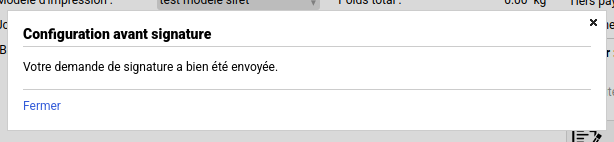 Une fois la clé créée, la fenêtre se ferme et vous pouvez poursuivre l’envoi du document pour signature.